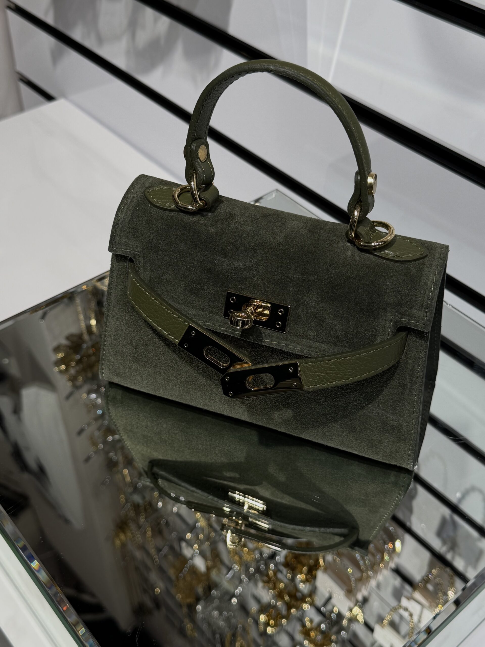 • Polished Hardware: Subtle gold or silver accents that complement the bold green tone.